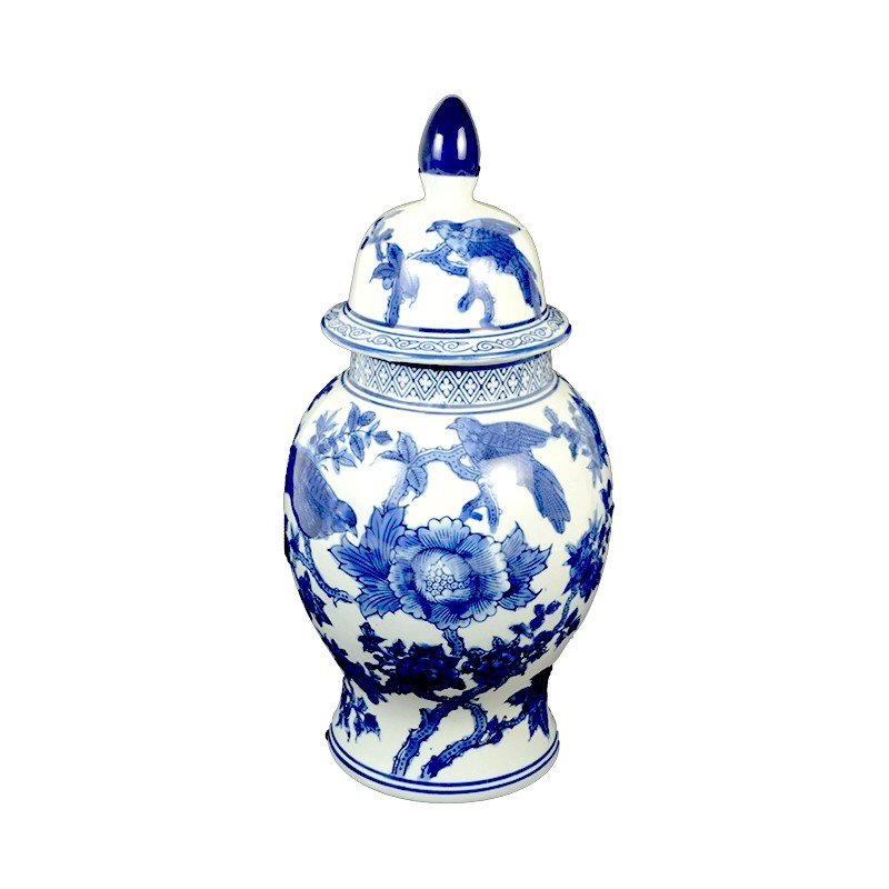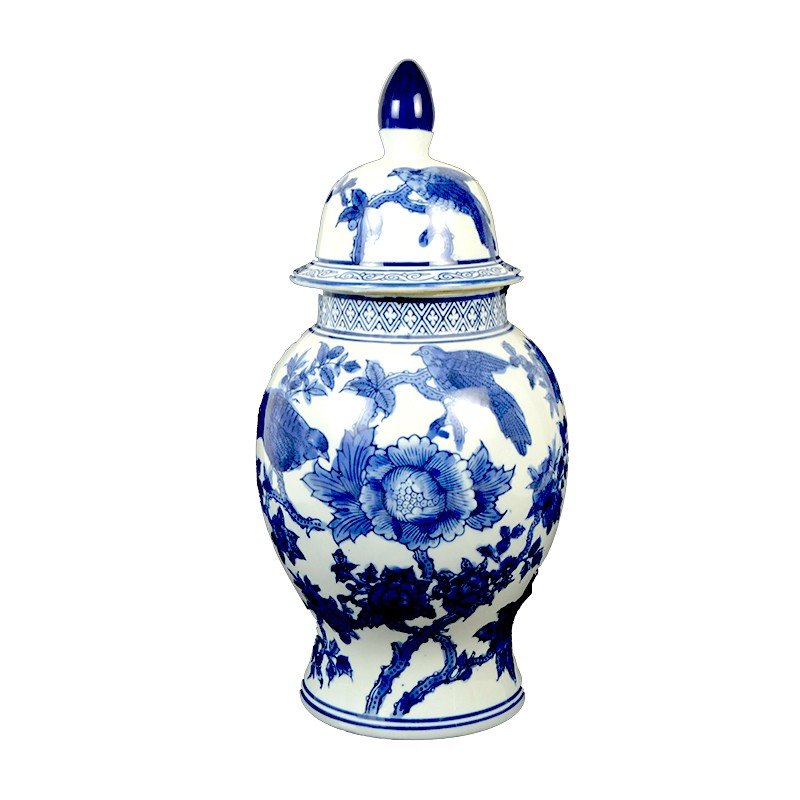 Potiche Madeline, a Porcelana decorada branco e azul nos padrões “Cantão” e “Nanking”, foi muito apreciada na era vitoriana e era exclusiva da alta sociedade, fazendo parte das mesas mais elegantes da época.