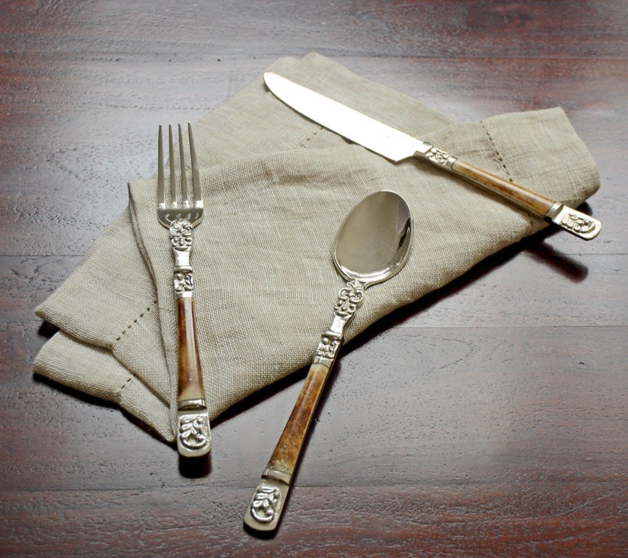 Cor - Prata / Garantia Contra defeitos de fabricação / Cabos com design Amadeirado /Conteúdo da Embalagem- 4 Facas de mesa- 4 Colheres de mesa- 4 Garfos de mesa -4 colheres de sobremesa
